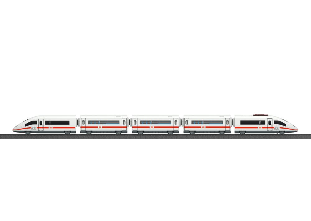 Großes VorbildBahnhöfe und das Einfahren von Zügen bringen Kinderaugen zum Leuchten. Das kann nun auch im Kinderzimmer passieren, denn die Märklin my world Startpackung “ICE 3” enthält einen 5-teiligen Hochgeschwindigkeitszug mit 63 cm Länge, der mit seinem schnittigen Design über die selbst zusammengesteckte Strecke rast. Die abnehmbaren Dächer der drei Zwischenwagen sorgen für viele Spielmöglichkeiten. Die detailreiche Gestaltung des Schnellzugs orientiert sich am Original und wird Fan-Herzen höherschlagen lassen. Die verschiedenen Weichen bieten noch mehr Spielraum beim Zusammenbau. Stück für Stück entstehen großartige Streckenverläufe durch das Spielzimmer, die sich mit Sets separat erhältlicher Kunststoffgleise noch erweitern lassen. Das Zusammensetzen der einzelnen Teile hilft dabei, die motorischen Fähigkeiten und das Verstehen von Zusammenhängen zu schulen.Volle Kontrolle mit dem Märklin Power Control StickDer kabellose Märklin Power Control Stick kann von Kindern mit nur einer Hand bedient werden. Damit lässt sich der Zug vorwärts und rückwärts in jeweils drei Geschwindigkeitsstufen fahren. Außerdem kann der Zug auf Knopfdruck am Control Stick verschiedene Soundeffekte abspielen und sein Zweilicht-Spitzensignal anschalten.Sicheres Spielen mit MärklinDamit auch schon die Kleinsten mit dem Modellzug von Märklin spielen können, steht Sicherheit an oberster Stelle. Die einzelnen Abteile der Züge sind über sichere Magnetkupplungen miteinander verbunden, die keine kleinen Einzelteile haben und einfach zu bedienen sind. Der motorisierte Triebkopf mit wiederaufladbarem Akku ist kindersicher gestaltet und daher das perfekte Spielzeug für den Einstieg in die Modellzugwelt ab 3 Jahren. Der Akku mit passendem Ladekabel und die Batterien für den Power Control Stick (2x AAA-Batterien) sind im Lieferumfang enthalten, sodass der Spielspaß direkt losgehen kann. Die einzelnen Schienenteile lassen sich ganz einfach zusammenstecken und alle Teile des Spielsets sind besonders robust gestaltet. Somit ist das Spielset perfekt für große und kleine Fans von Zügen und Modelleisenbahnen geeignet.
